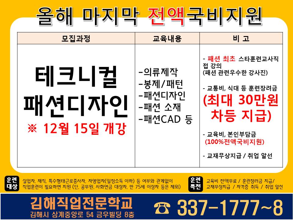 [올해 마지막 100%국비지원교육 개강] '테크니컬 패션디자인'
