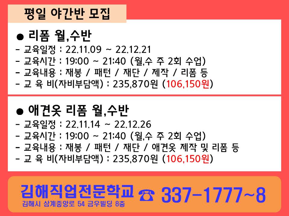 [공지]11월 개강안내<평일 야간반>
