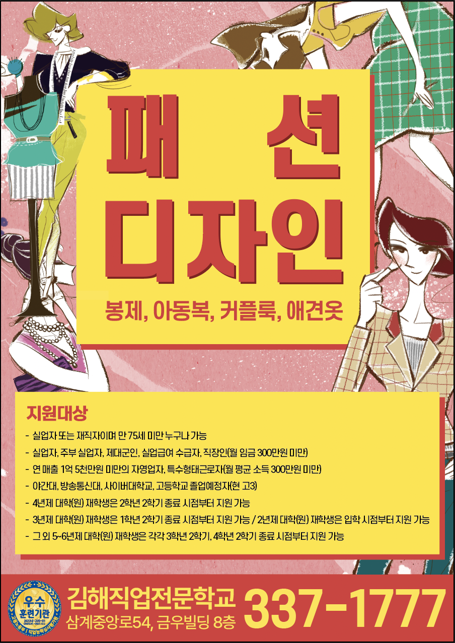 - 훈련내용 : 봉제, 패턴, 재단, 제작, 3D 패션 등